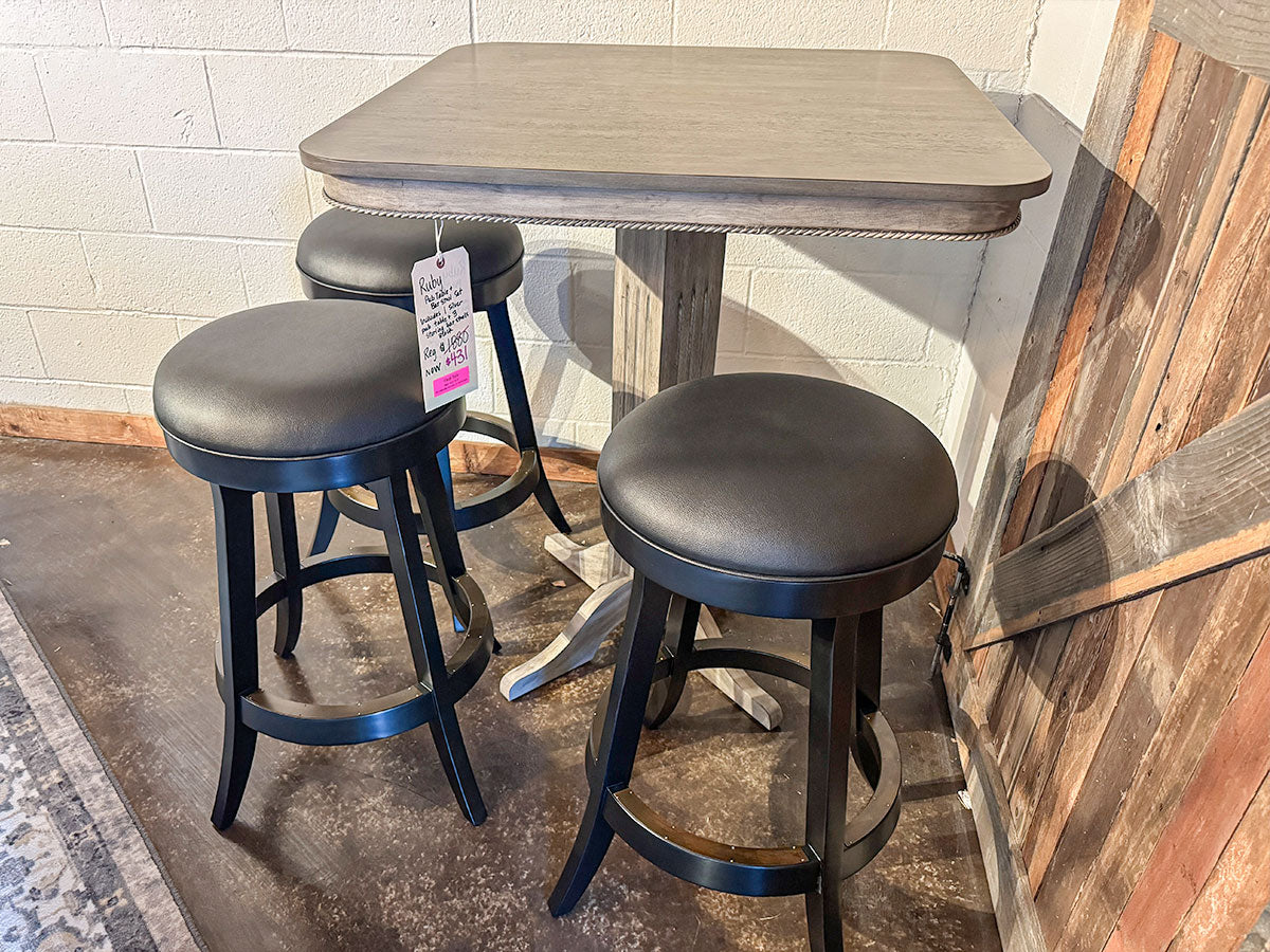 As the best source for pub tables in Texas, we are excited to offer the Ruby Combo Set floor model display! With its modern design qualities, it will elevate any space and pairs well with any contemporary or transitional decor. Its bold, rustic aesthetics create great personality and timeless patinas that age beautifully. Grab this floor model display at an exceptional discount before it's gone! See it for yourself and get hands on today at our Dallas Showroom!